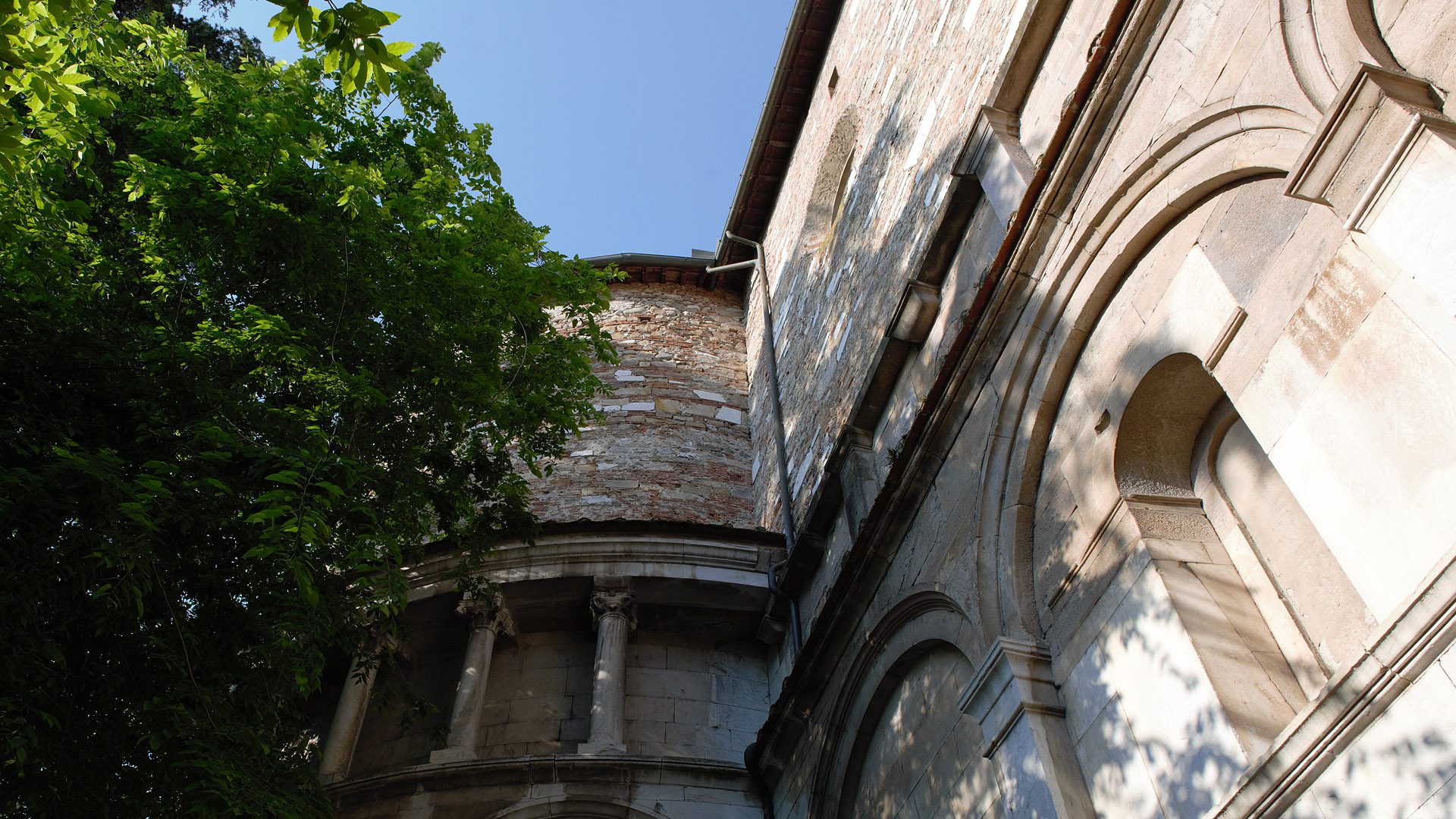 The primitive church was rebuilt in Romanesque style in the 12th century and restored in the 16th century with modifications that changed its appearance. The interior retained the three-nave floor plan, but the original truss roof was replaced with cross vaults. The structure was raised overall with brick walls, clearly visible on the outside: the contrast of the bricks with the white of the medieval stones is striking.