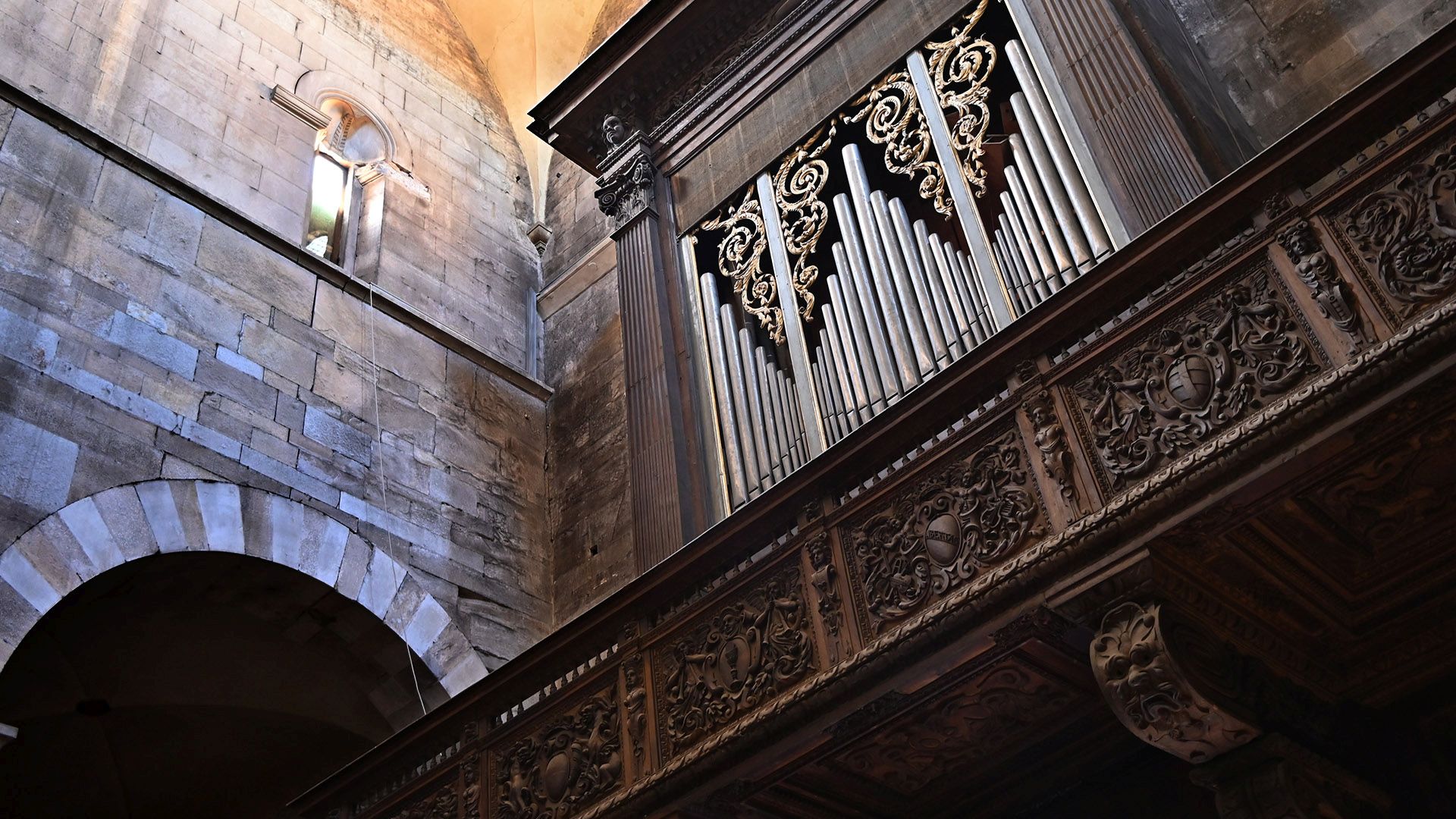 The people of Lucca call the church ‘Santa Maria Bianca’ for the beautiful and austere white stone façade from Santa Maria del Giudice, simple and perfect with its arches supported by half-columns, the three portals surmounted by architraves and lunettes decorated in classical style, and the two overlapping loggias in the upper part of the façade, from which majestic and proud lions observe the square. Particularly noteworthy is the slab with the enthroned Virgin and Child in the lunette of the left portal.