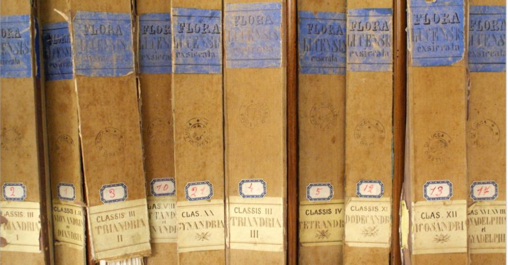 that have maintained the original layout of the original finds and subsequent donations including that of the Lucca explorer Carlo Piaggia, protagonist of important geographical and ethnographic discoveries and the Mezzetti herbarium, donated to the Cabinet by the author. About twenty dense volumes of notes on over 1500 specimens of plants mainly from the nineteenth-century Lucca territory, some of which are now extinct.