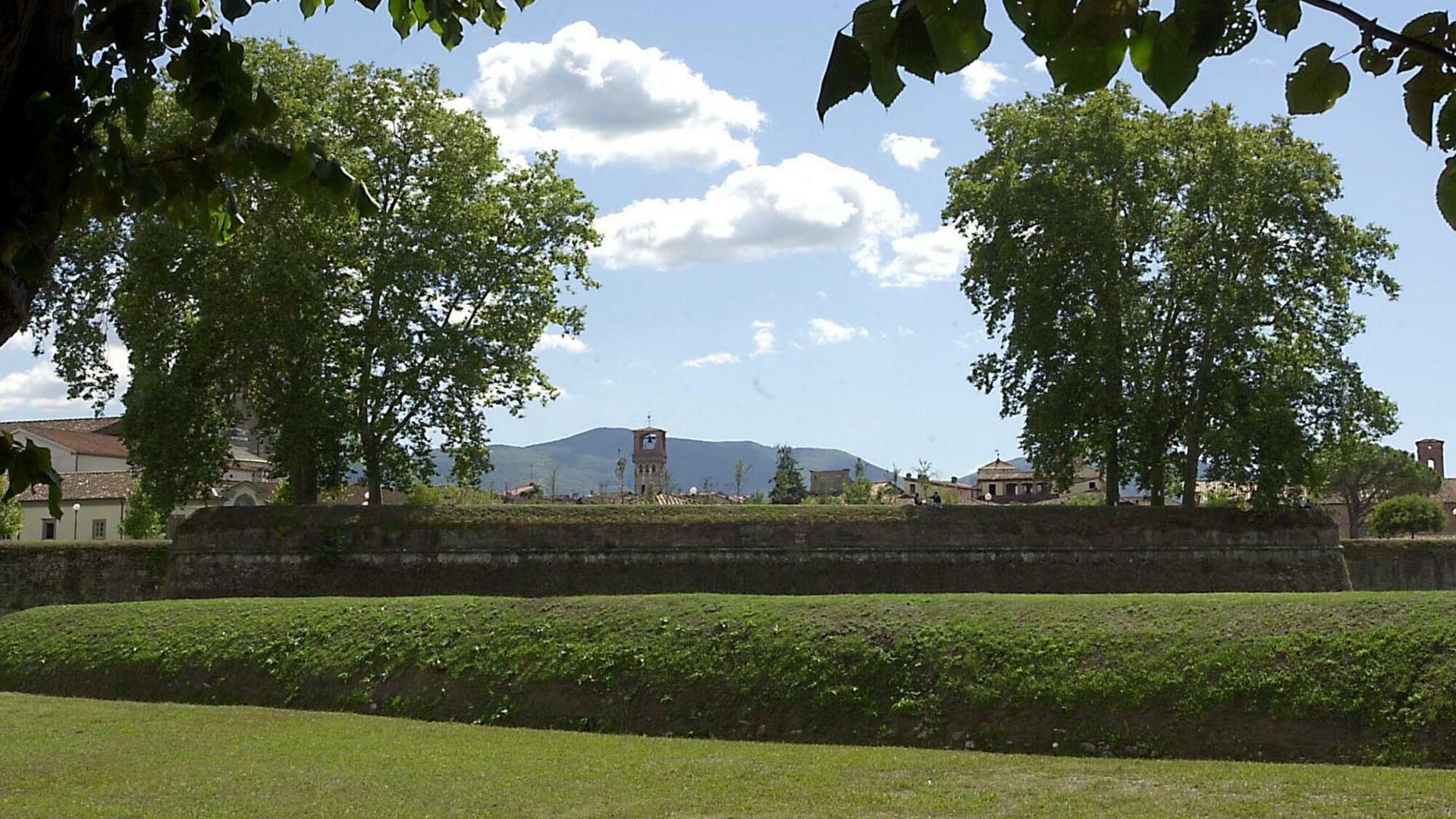 Proceeding on the wall, in casermetta San Pietro the company of the Crossbowmen of Lucca is located. After passing baluardo San Martino and the fort of Porta Santa Maria, you reach the San Frediano Platform. Inside the wall circle, a beautiful framing is offered by the apse of the San Frediano church and the splendid eighteenth-century garden of Palazzo Pfanner. Outside, the view opens on the imposing green surface of the wall's ramparts where the rare structure of "lunettes" with moats is still preserved, and beyond the surrounding hills of Lucca and the unmistakable profile of the Apuan Alps.