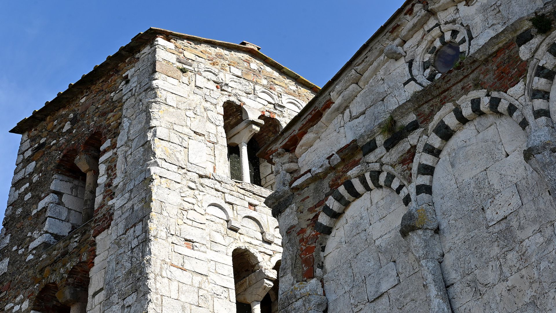 La iglesia es de estilo románico pisano-lucano, con una nave y dos tramos y un ábside iluminado por tres ventanas de una sola hoja. La fachada tiene un doble orden de logias ciegas, decoradas con las típicas inserciones bicolores de piedra verde, que caracterizan a muchas otras iglesias de Lucca.