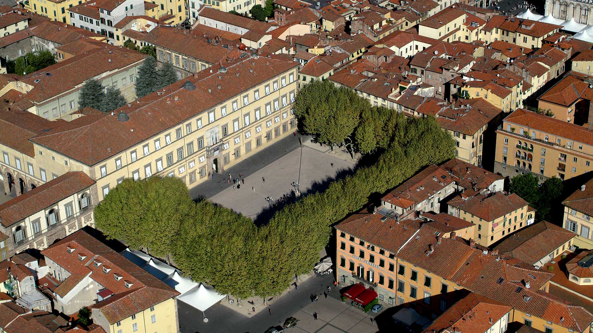 La gran plaza dedicada a Napoleón ha sido la sede del poder señorial desde los tiempos de Castruccio Castracani (siglo XIV) y Paolo Guinigi (siglo XV).
