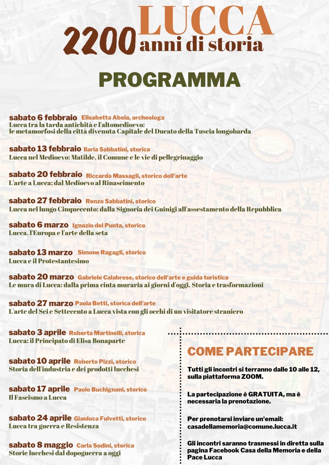 Per iscriversi e partecipare e aver la possibilità di porre domande è necessario iscriversi all’indirizzo e-mail: casadellamemoria@comune.lucca.it.