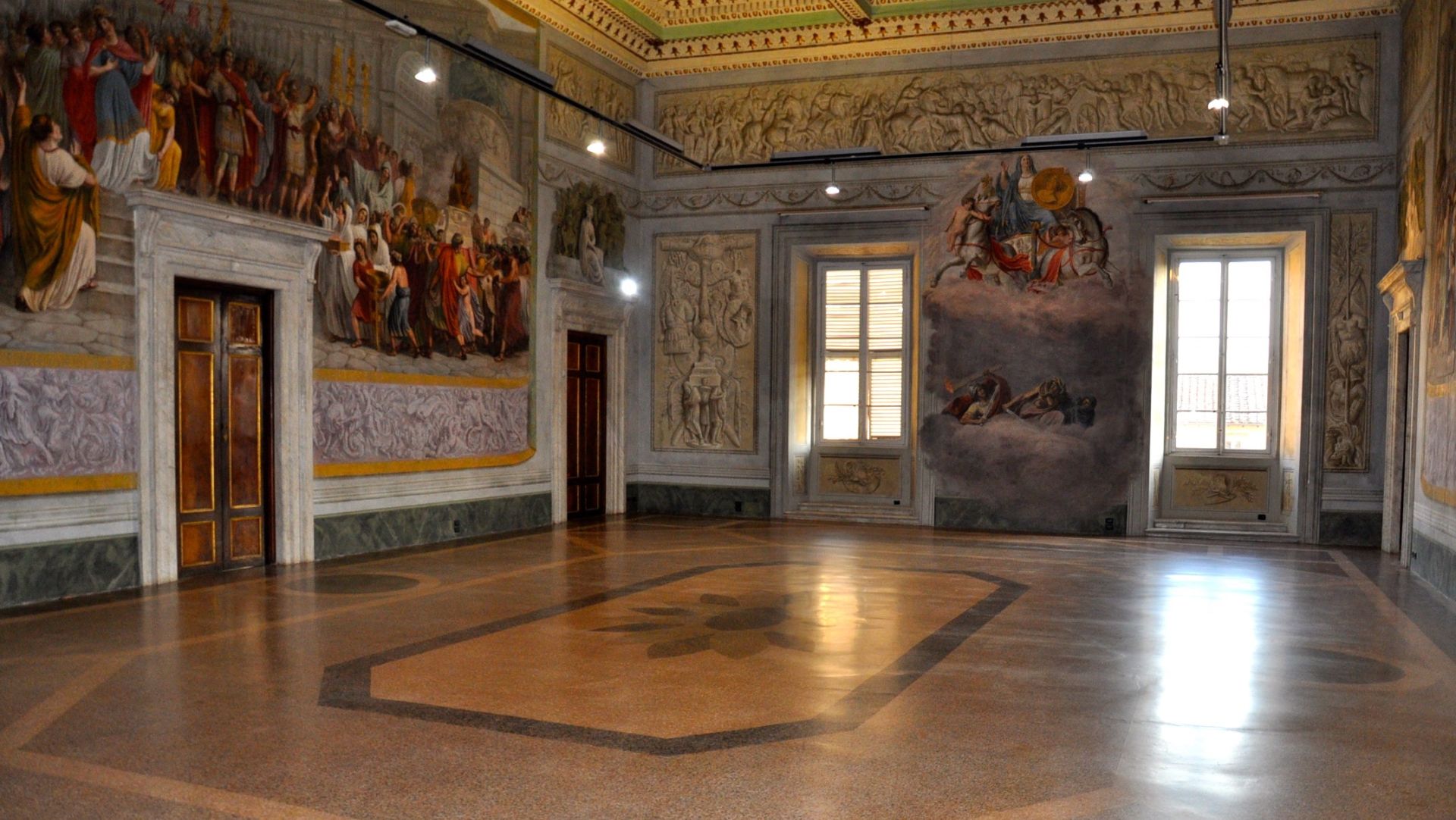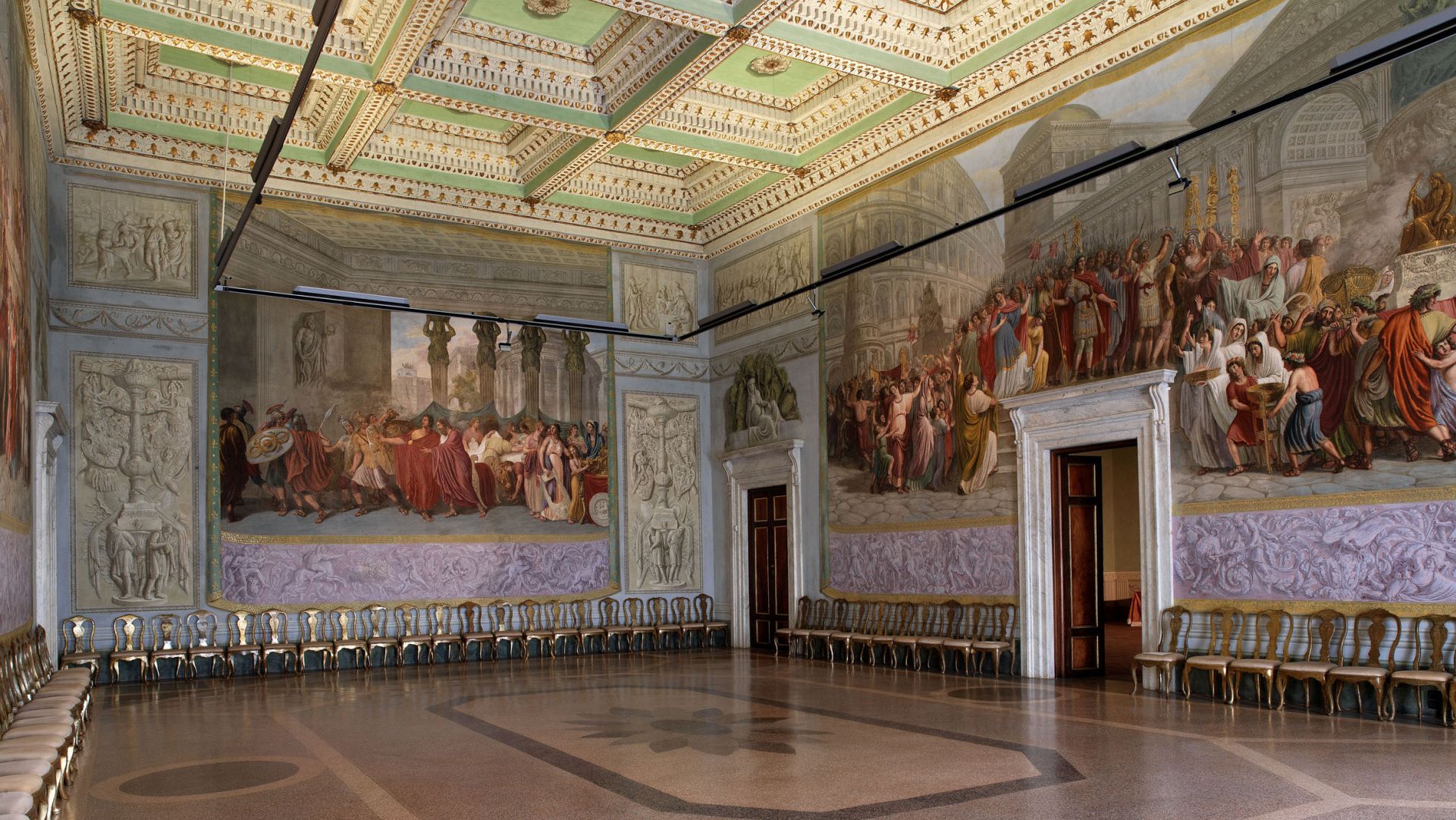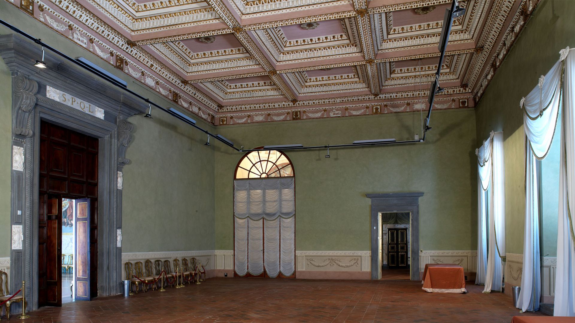 Dal Cortile degli Svizzeri una monumentale Scala Regia porta alla Galleria delle Statue, decorata con stucchi e statue marmoree di gusto classico. Da lì si accede al Quartiere di Parata e agli Appartamenti Reali riccamente decorati: affreschi con soggetti mitologici, stucchi dorati, bassorilievi e festoni floreali, caminetti in marmo bianco di Carrara con maioliche, porte in noce con rilievi bronzei. L'ambiente più sontuoso è la Sala delle Guardie (o Sala Ademollo dal nome dell'artista) con un ricco ciclo di affreschi dedicato all'imperatore Traiano.