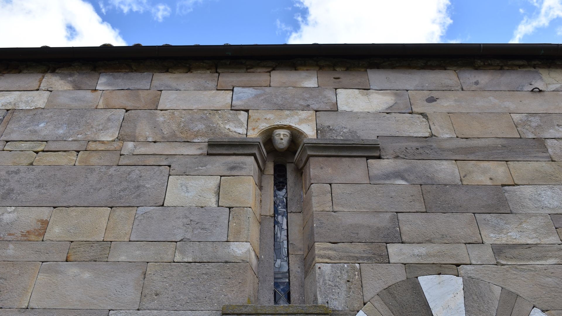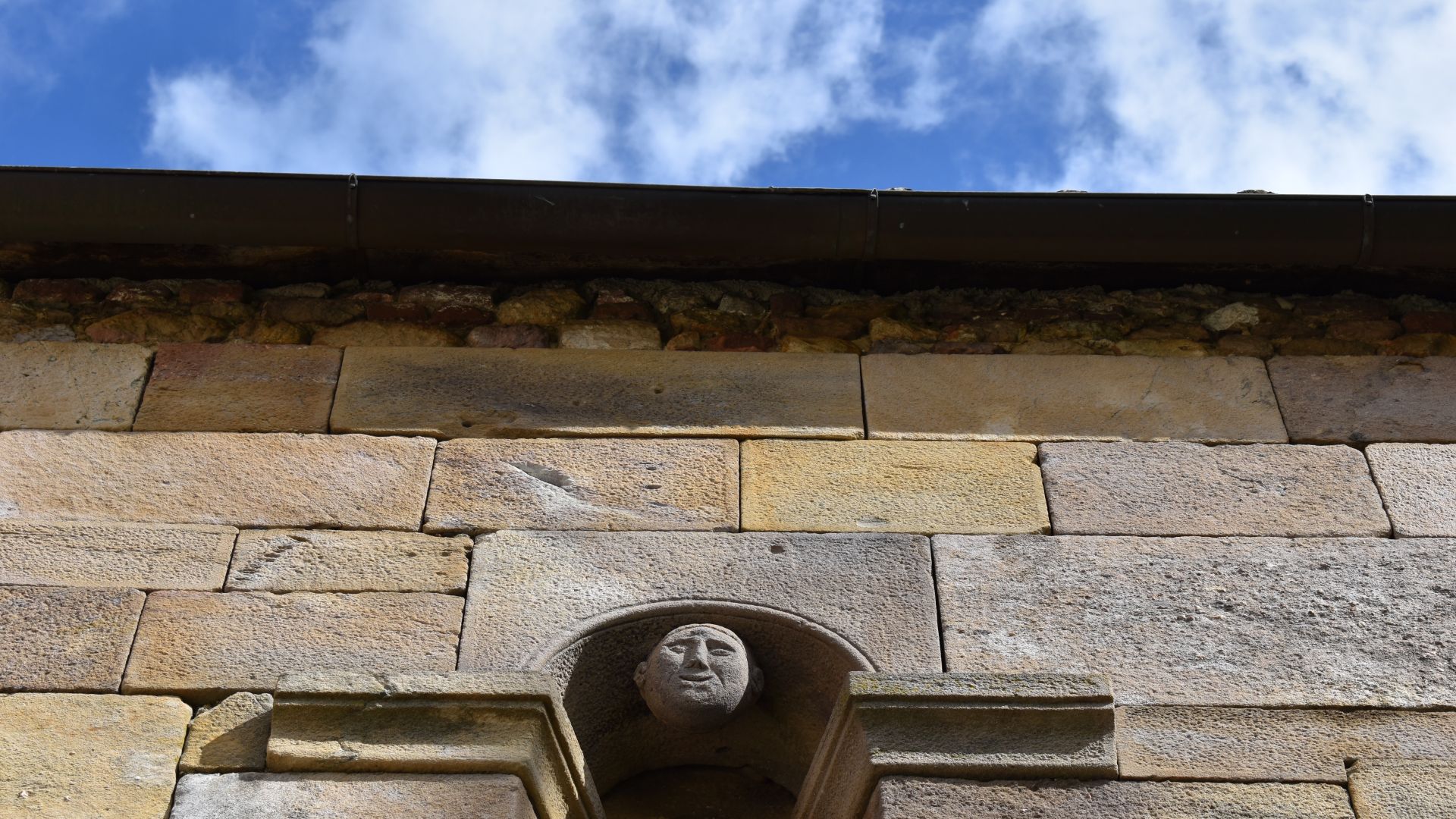 Anche il lato sud della chiesa ha un interessante portale con capitelli in calcare bianco e lunetta scandita dall'alternanza di conci in pietra locale e marmo bianco. Su questo lato non passano inosservate le quattro monofore decorate da piccole teste umane.