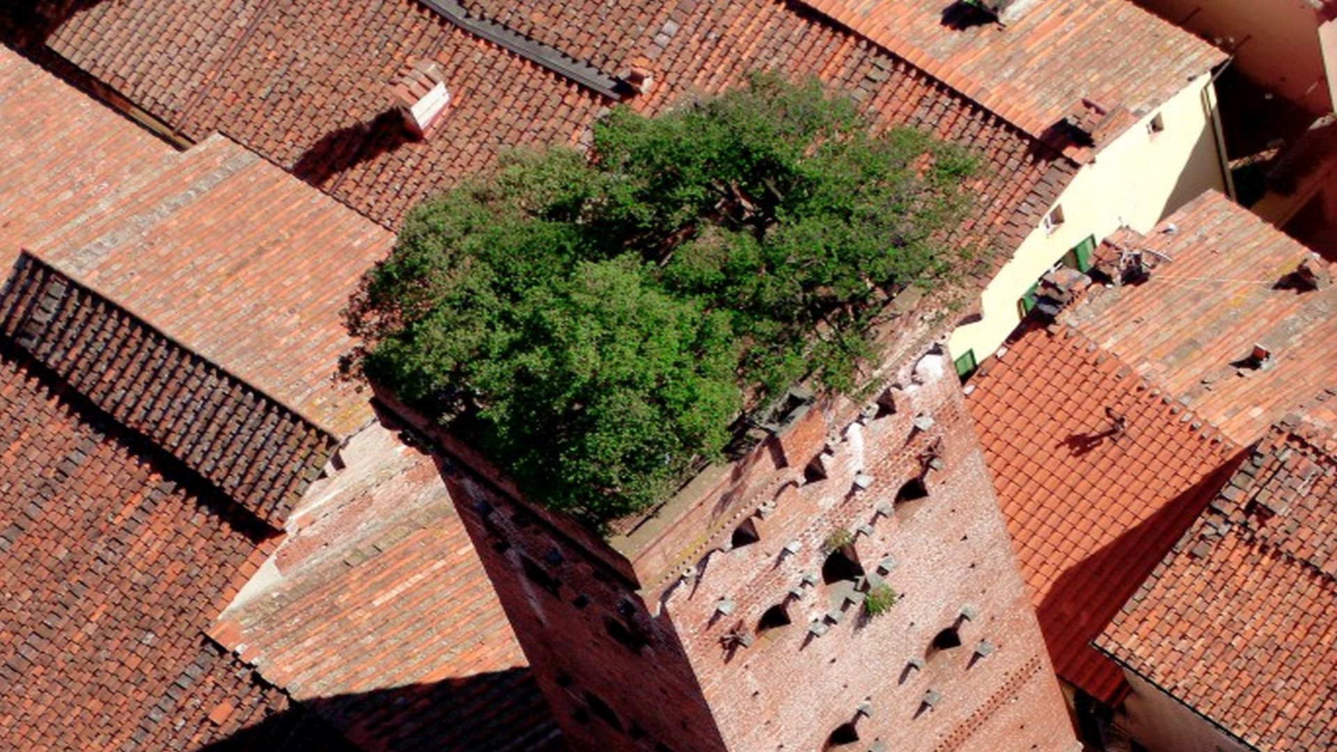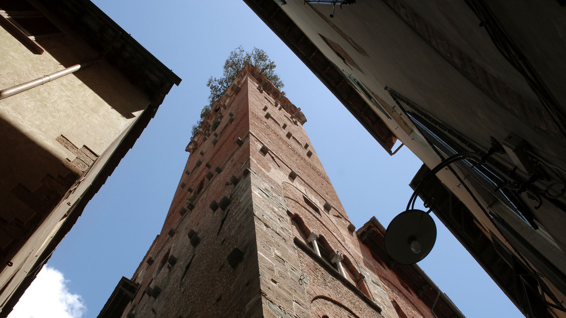 La Torre Guinigi svetta fiera ed elegante, con i suoi 45 metri di altezza, all'angolo tra via Sant'Andrea e via delle Chiavi d'Oro. Con il passare del tempo è diventata, insieme alle altrettanto famose Mura cittadine, uno degli inconfondibili simboli di Lucca, grazie al "pennacchio" di lecci che cresce nel giardino pensile, sulla sommità.