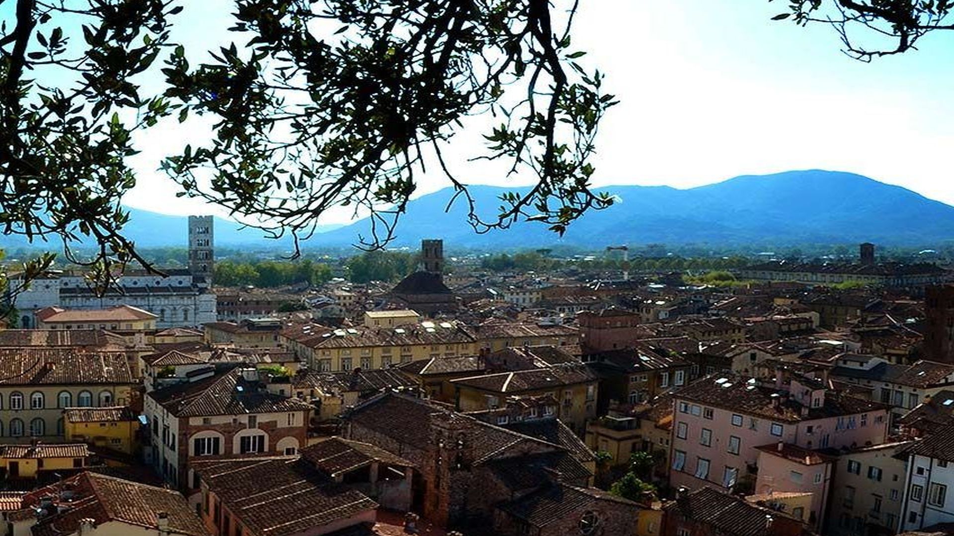 Per raggiungere la terrazza occorre salire ben 25 rampe di scale e 230 gradini. Una salita impegnativa ricompensata da una vista spettacolare. Nelle giornate limpide la città appare in tutta la sua bellezza: all'ombra dei grandi lecci, si possono ammirare gli scorci delle piazze e delle chiese, gli alti campanili, i tetti rossi delle case, le strette vie e tutt'intorno il paesaggio delle verdi colline e delle montagne, le Alpi Apuane a nord-ovest, gli Appennini a nord-est, il Monte Pisano a sud.